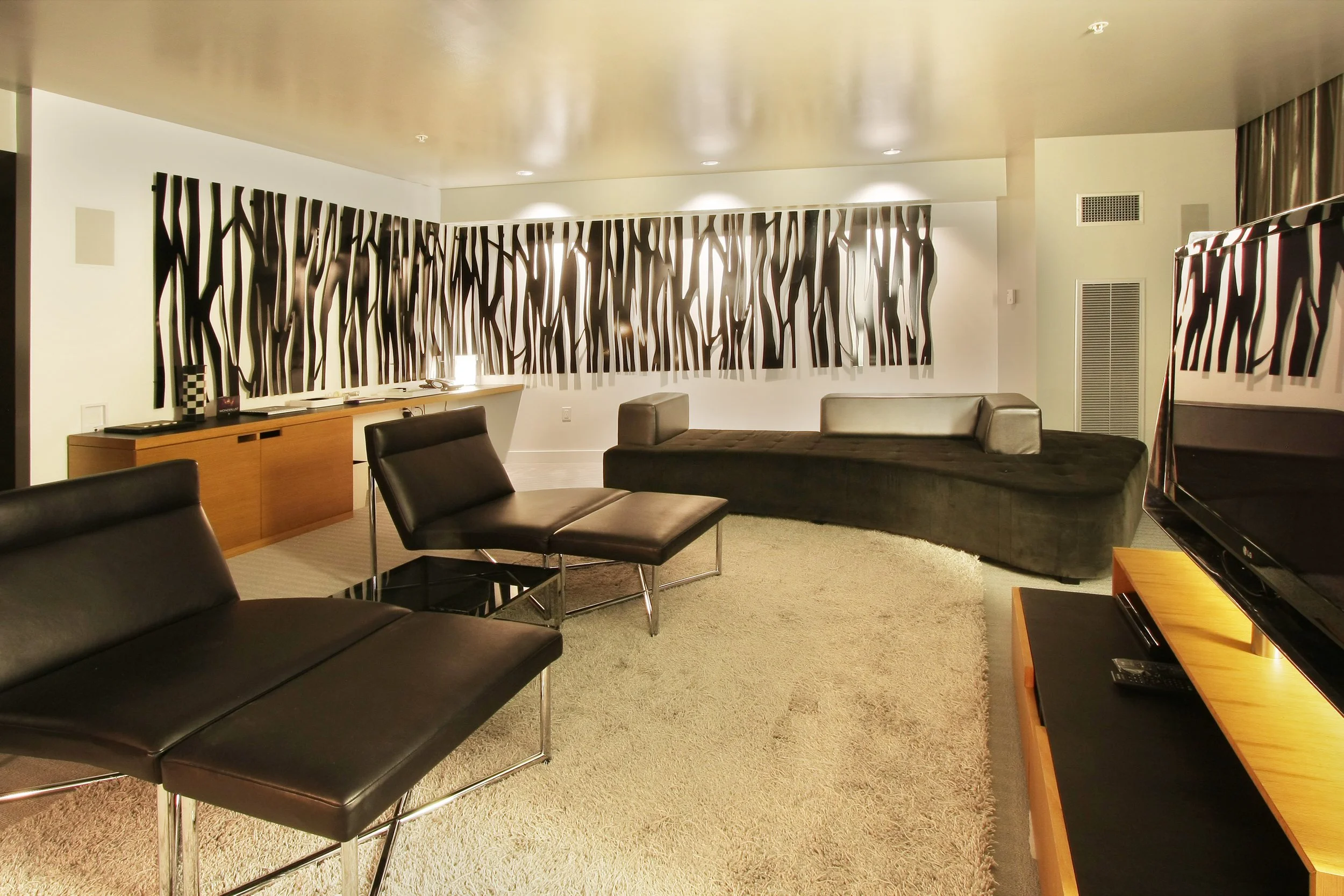 Artwork on the big screen includes steel graphic images fabricated for Scott Duncan Films for CBS and Broadway Video for the NFL on CBS for the 2003-2005 Season. Other work has been captured for “The Apprentice” on NBC and the feature-length film, “Central Intelligence.”